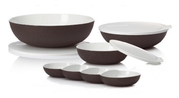 Как морская ракушка, с матовой, слегка шероховатой поверхностью (с внешней стороны изделия) и гладкой, сияющей внутренней частью, чаши сделаны из двух различных материалов контрастного цвета. Изделия идеально подходят для сервировки свежих блюд, таких как салаты, закуски и десерты. Они так же идеально подходят для хранения охлаждённой пищи, такой как запеканка, макароны, супы или овощи. Большая чаша объёмом 3,5 литра идеально подходит для сервировки блюд для всей семьи. Благодаря шероховатой поверхности внешней стороны чаш, вероятность появления царапин и порезов на изделиях снижается. Вы можете заранее приготовить еду, закрыть её крышкой и оставить в холодильнике. Вы можете снять крышки и использовать сервировочную функцию коллекции, накрыв обеденный стол. После -- снова закрыть оставшуюся еду крышками и поместить чаши на хранение в холодильник. Крышки предотвращают рассыпание продукта, а также распространение запахов в холодильнике. Крышки также предотвращают преждевременное высыхание продуктов. Они легки в обращении и предотвращают проливание и просыпание.
