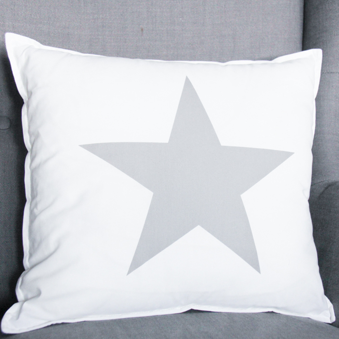 Звёзды не выходят из моды! Специально для <<звёздных>> детских (да и любых других комнат в доме) наши мастера шьют стильные белые подушечки с крупной серой звездой в центре. Эта интерьерная подушка станет хорошим подарком как для девочки, так и для мальчика.