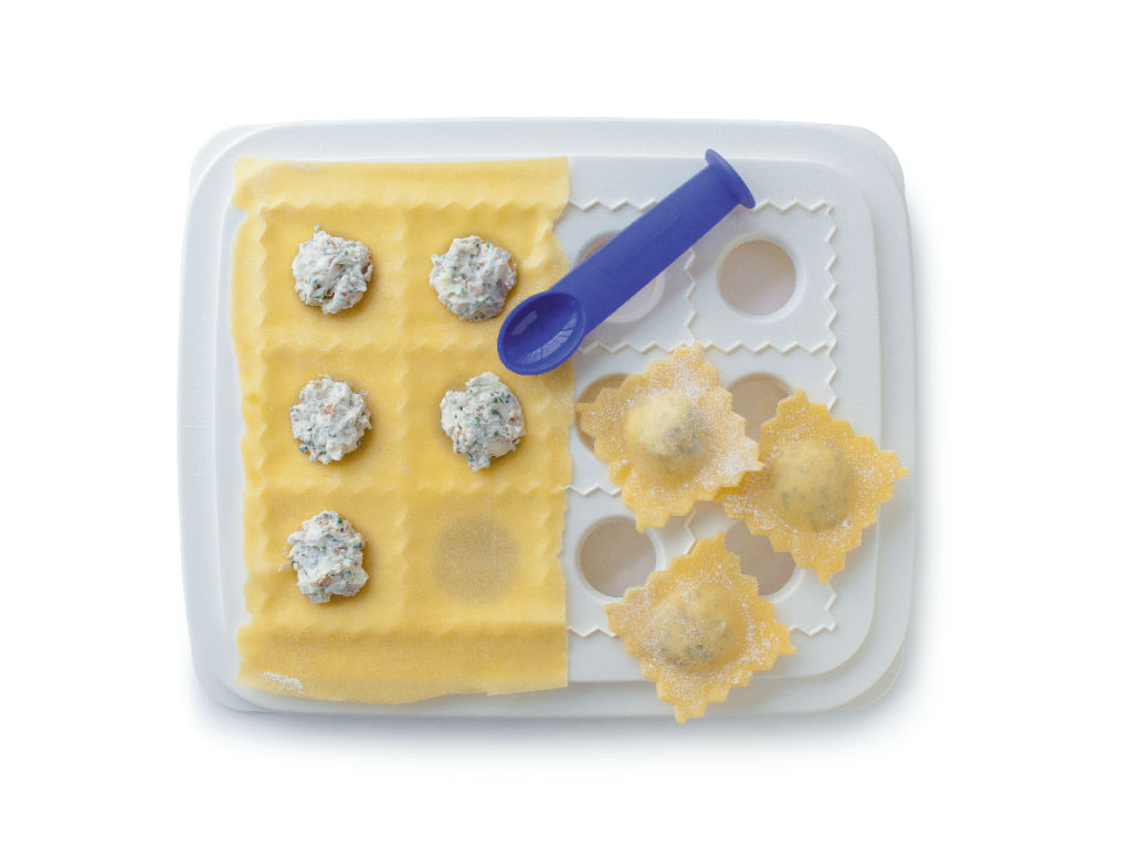 Забудьте о сложностях, возникающих во время извлечения готовых изделий из формы. Все, что вы должны сделать, - это перевернуть Форму для равиоли и несколько раз встряхнуть. После столь простой процедуры готовые пельмени высыплются в заранее приготовленный контейнер или тарелку.