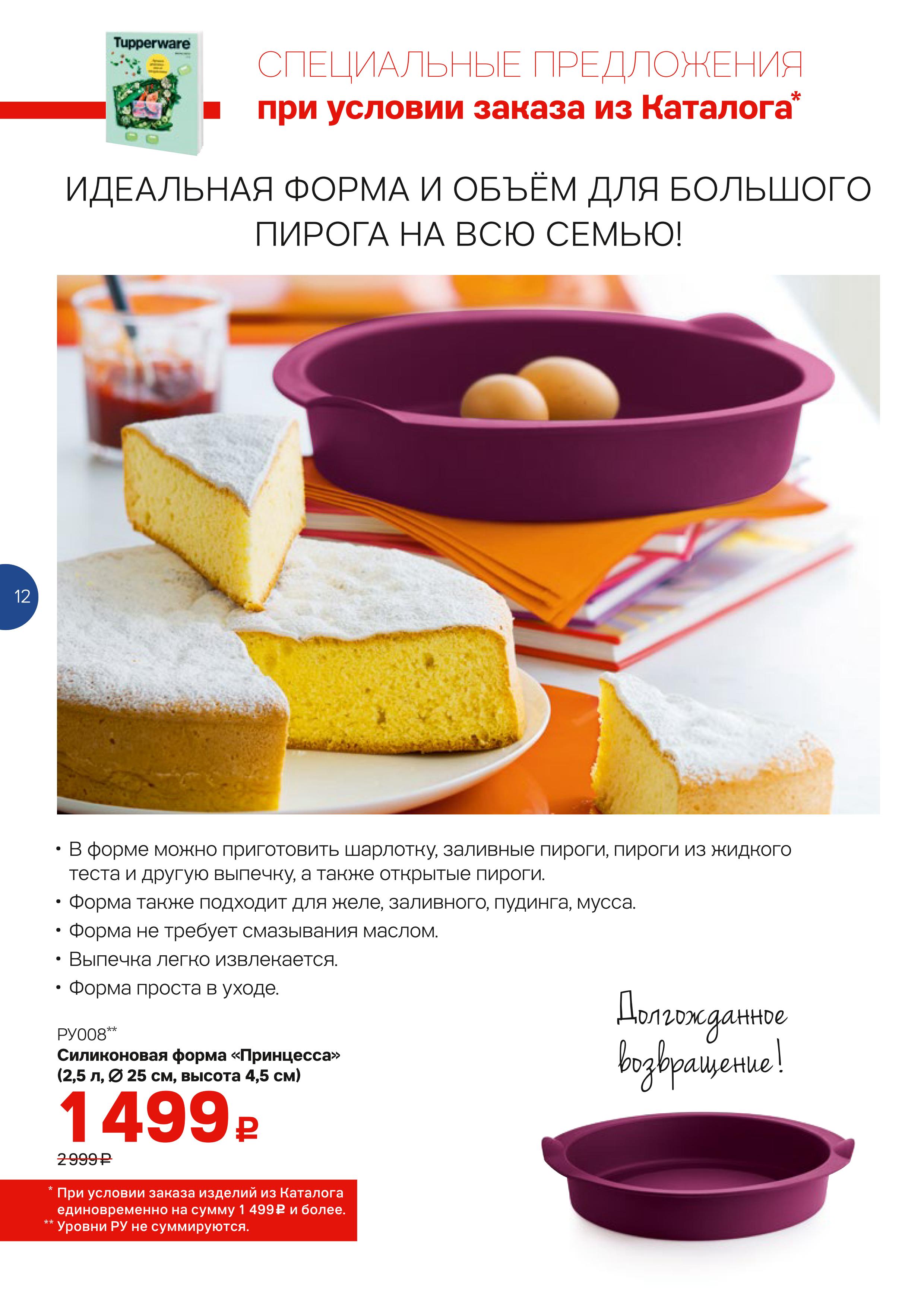В силиконовой форме <<Принцесса>> можно приготовить многочисленные желе, пудинги, торты и запеканки. Классические открытые пироги с мясом, капустой, яблоками удадутся на славу!